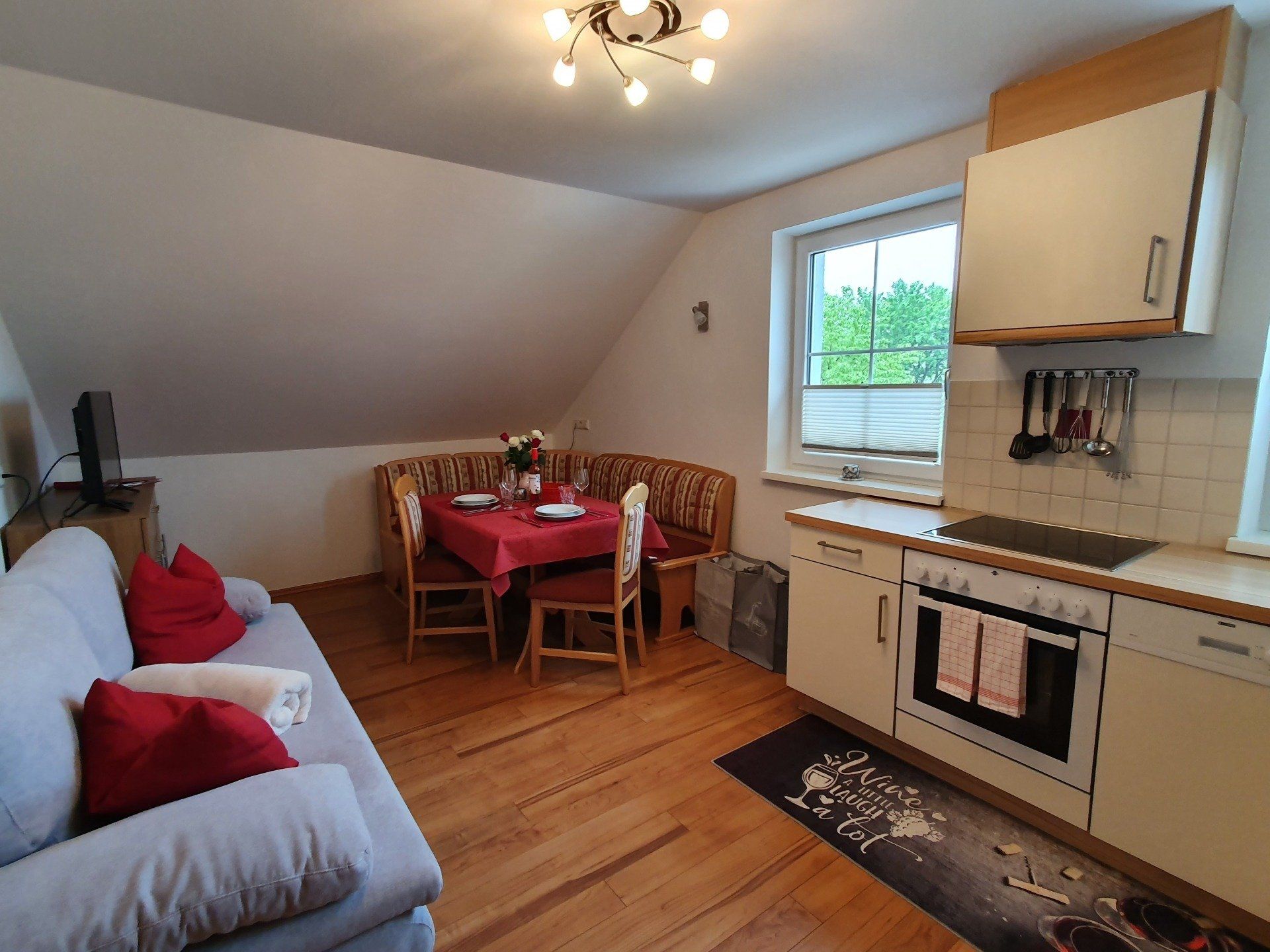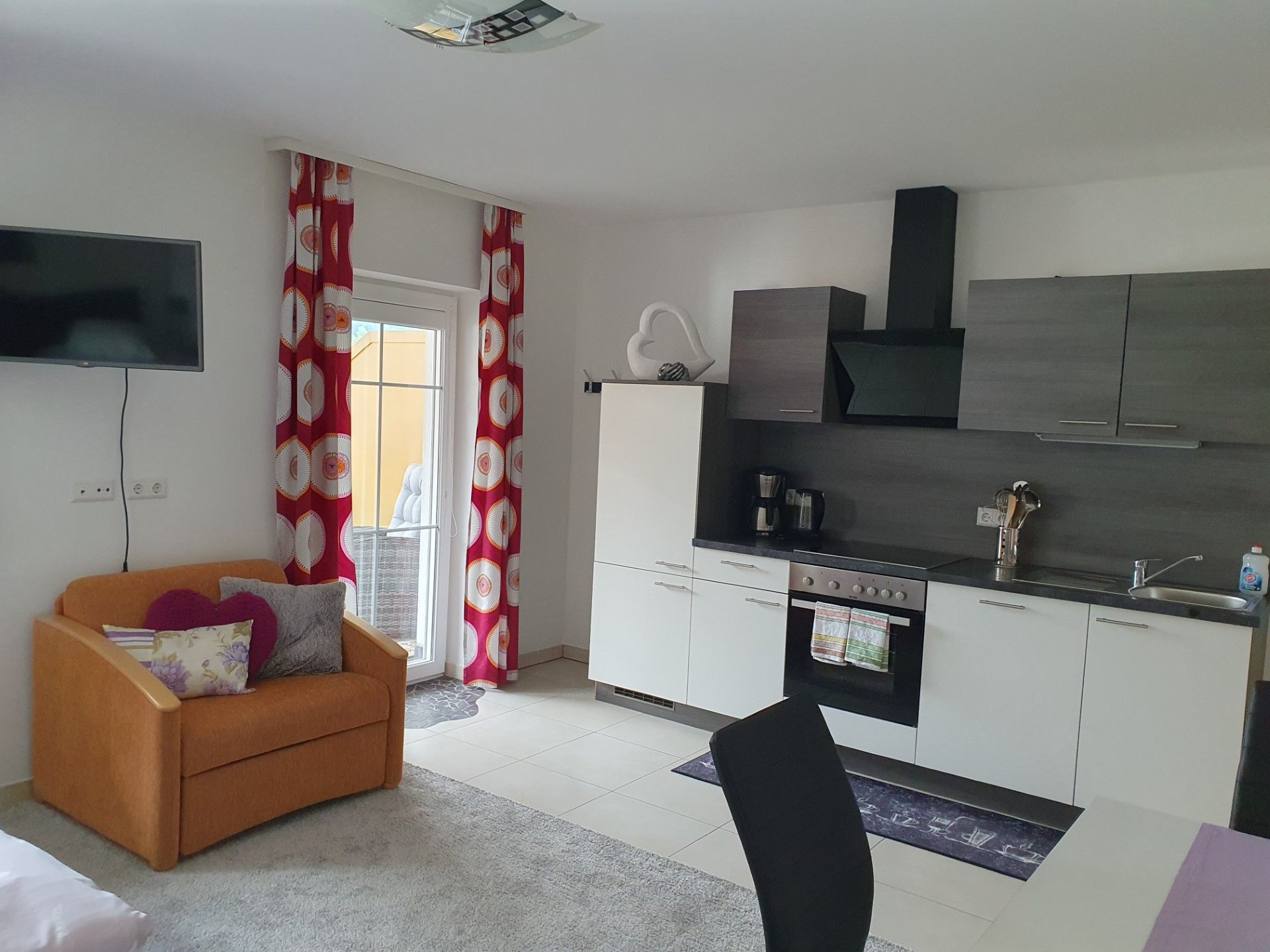 Das gemütliche Einraumappartment mit allem, was Sie für einen angenehmen Aufenthalt benötigen! Die Küche ist mit einem Geschirrspüler, einer Kaffeemaschine und einem Wasserkocher ausgestattet, damit Sie sich Ihr Frühstück oder Abendessen ganz bequem in Ihrer Unterkunft zubereiten können. Für das Kochen steht Ihnen ein 4 Plattencerankochfeld zur Verfügung. Das Badezimmer bietet eine separate Dusche, einen Fön sowie einen Kosmetikspiegel. Wir freuen uns bereits jetzt auf Ihren Besuch und hoffen, dass Sie sich bei uns wie zuhause fühlen werden.